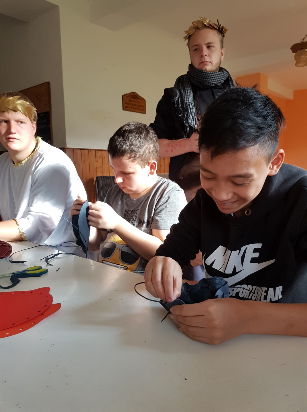 Der Mittwoch ist schön gestartet. Alle waren „auf den Fersen des Achilles“. In der Morgenrunde haben wir das Evolutionsspiel gespielt, indem sich alle von einem Wurm zu einem Titanen entwickeln konnten. Danach sind alle zum Frühstück gegangen. Nach dem Frühstück und den Diensten sind drei verschiedene Workshops gestartet. Es wurden Ledersäckchen gebastelt, Gruppenwappen und Stadtkarten erstellt, da die verschiedenen Gruppen nach Städten benannt wurden. Die Gruppen sind das ganze Lager über zusammen und kämpfen um den Sieg über den Olymp.