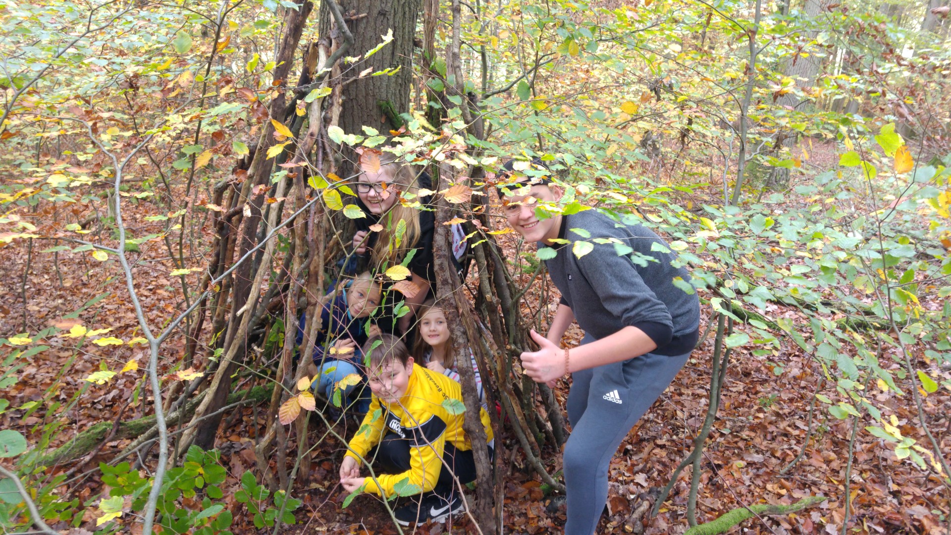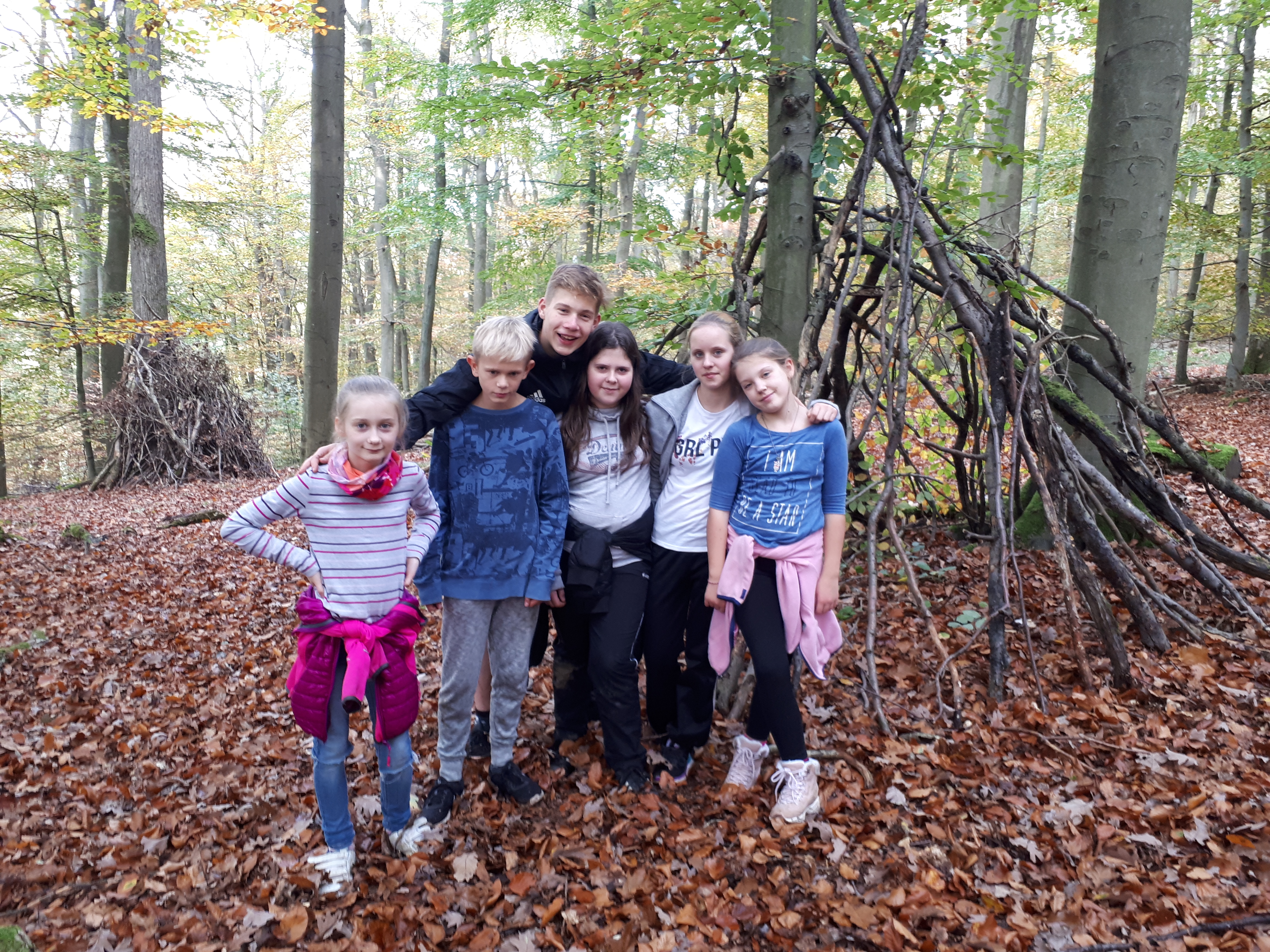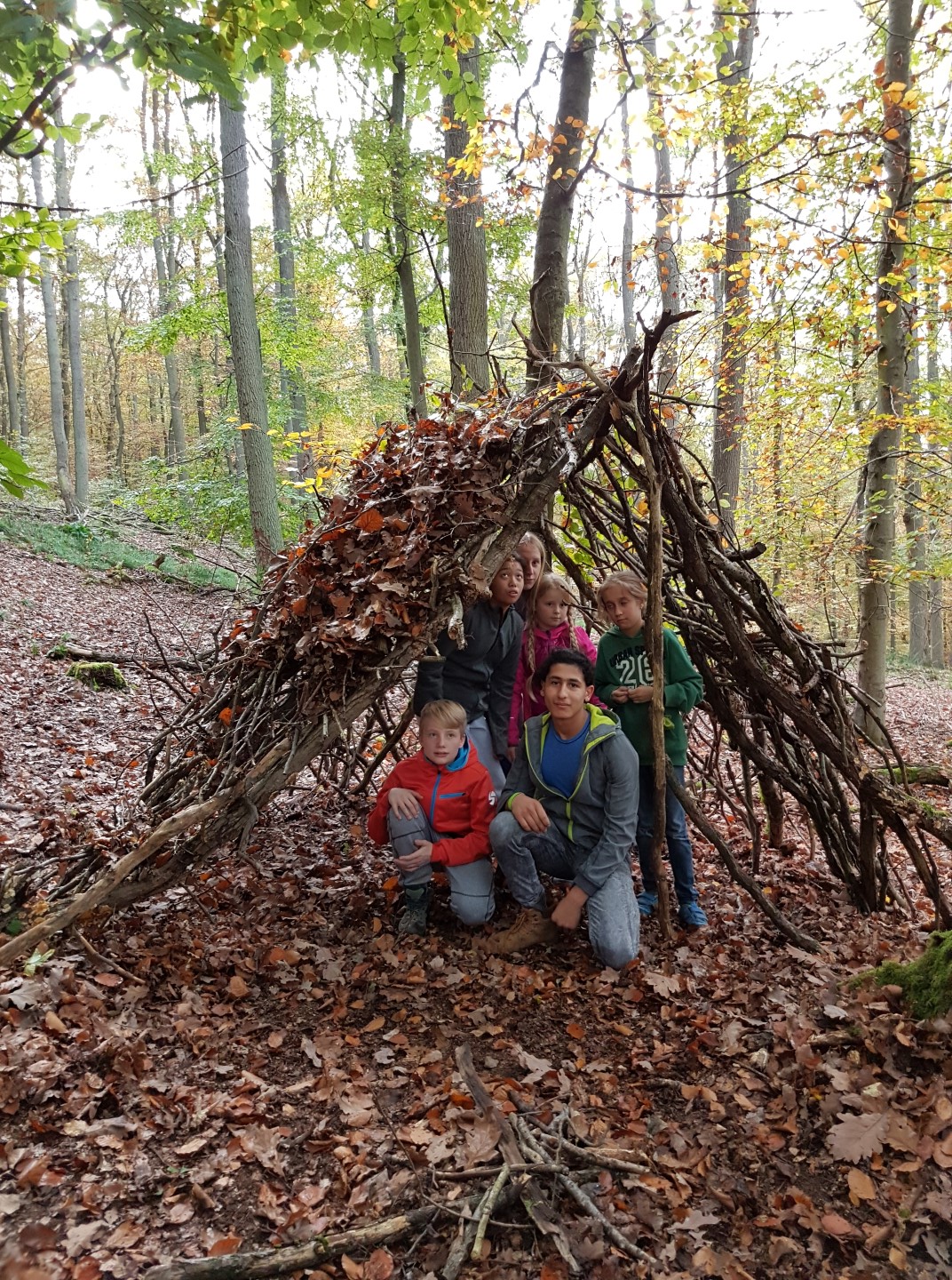 Am Nachmittag sind wir zusammen in den Wald gegangen. Zuerst wurden Hütten gebaut und anschließend noch Rätsel beantwortet.