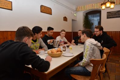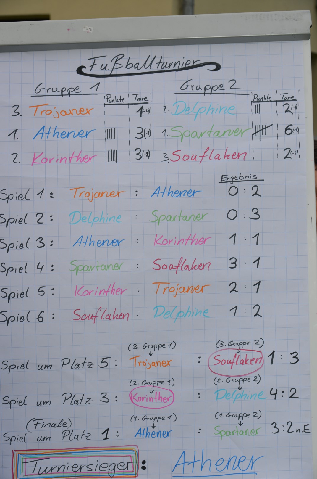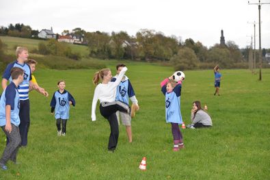 Die Fährten wurden zu besonderen Orten zurückverfolgt, indem wir Gegenstände auf Fotos gesucht haben und so wurde der Ort Katzenelnbogen erkundet. Zu vielen Orten wurden Fragen gestellt und alle hatten viel Spaß dabei diese zu beantworten. So konnten wir bei trockenem Wetter auch nette Menschen des Ortes kennen lernen. Gefreut haben sich, nach der Erkundung, alle über leckere Tortellini zum Mittagessen. Am Nachmittag haben wir uns dann noch sportlich betätigt und ein Fußballturnier veranstaltet, wobei sogar noch die Sonne raus gekommen ist. Nach so einem anstrengenden Tag haben wir am Abend den Film Herkules geguckt und es freuen sich alle auf das gleitende Frühstück morgen.