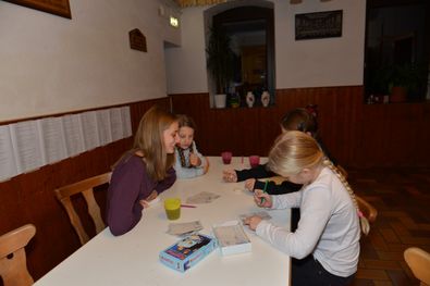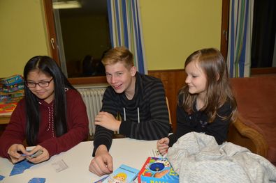 Am Abend ist dann Pater Tobias mit zwei seiner Läufer zu Besuch gekommen und hat mit uns allen einen Wortgottesdienst gehalten. Danach haben wir Brettspiele gespielt und eine Geschichte gehört.